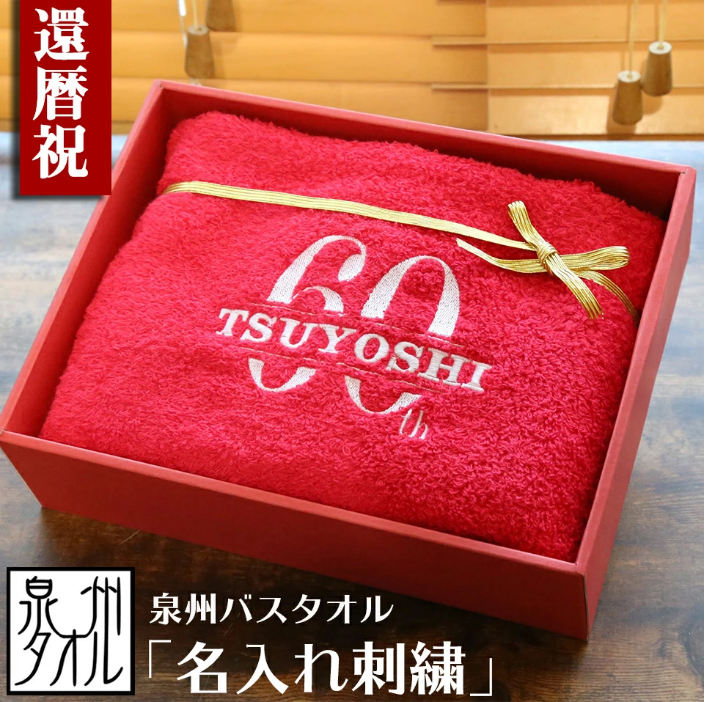 取扱品目 Twitter Facebook はてブ Pocket LINE コピー 2023.06.15 名入れTシャツ>>>オリジナルTシャツ作成します 名入れ 泉州バスタオル 国産「泉州バスタオル」「還暦の御祝」 名入れ刺繍入り